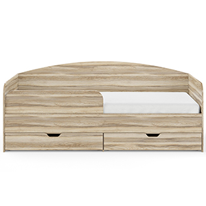 Одна из самых популярных моделей, по форме – это мягкое спальное место, низкий диванчик со спинкой и подлокотниками. Некоторые изготовители укомплектовывают съемными бортиками (детей помладше они уберегут от падения), устанавливают на ножки и подиум.